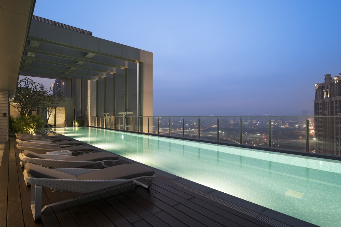 City holiday atmosphere for guests to enjoy sunbathing by the rooftop infinity pool, surrounding by magnificent view of Taichung's skyline and streetscape.